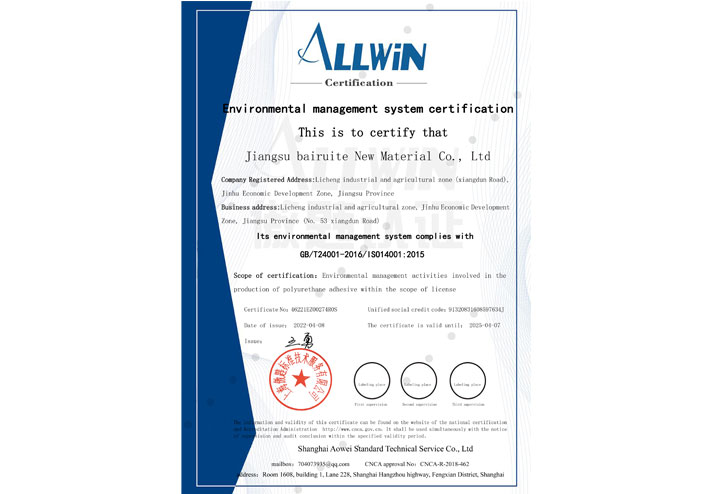 环境管理体系认证证书